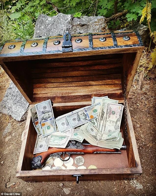 克莱恩补充说,宝藏箱里除了有1万美元现金外,还会有约10盎司(283克)的银币,以及自己扔进去的一些有趣的东西。