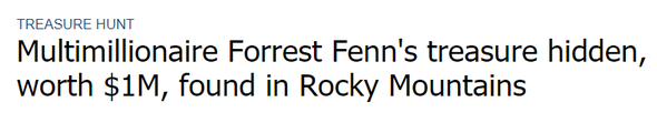 不过,90岁高龄的芬恩在接受采访时表示,一个寻宝者已经找到了这个宝藏箱子。