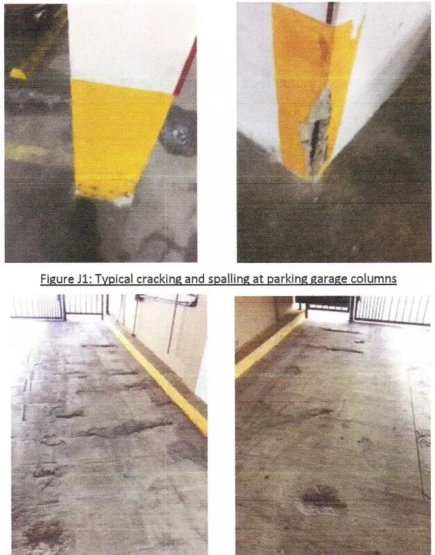 其中详细说明了建筑物的“混凝土中的重大裂缝和破裂”,并给出了修复成本的估算。