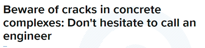这次倒塌事故提醒我们,如果住所里混凝土出现裂缝,一定要找工程师来检查,毕竟不怕一万,只怕万一。