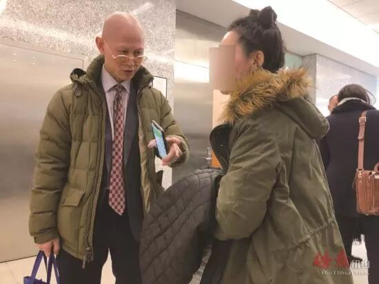 图片:被告妻子与律师在沟通。
