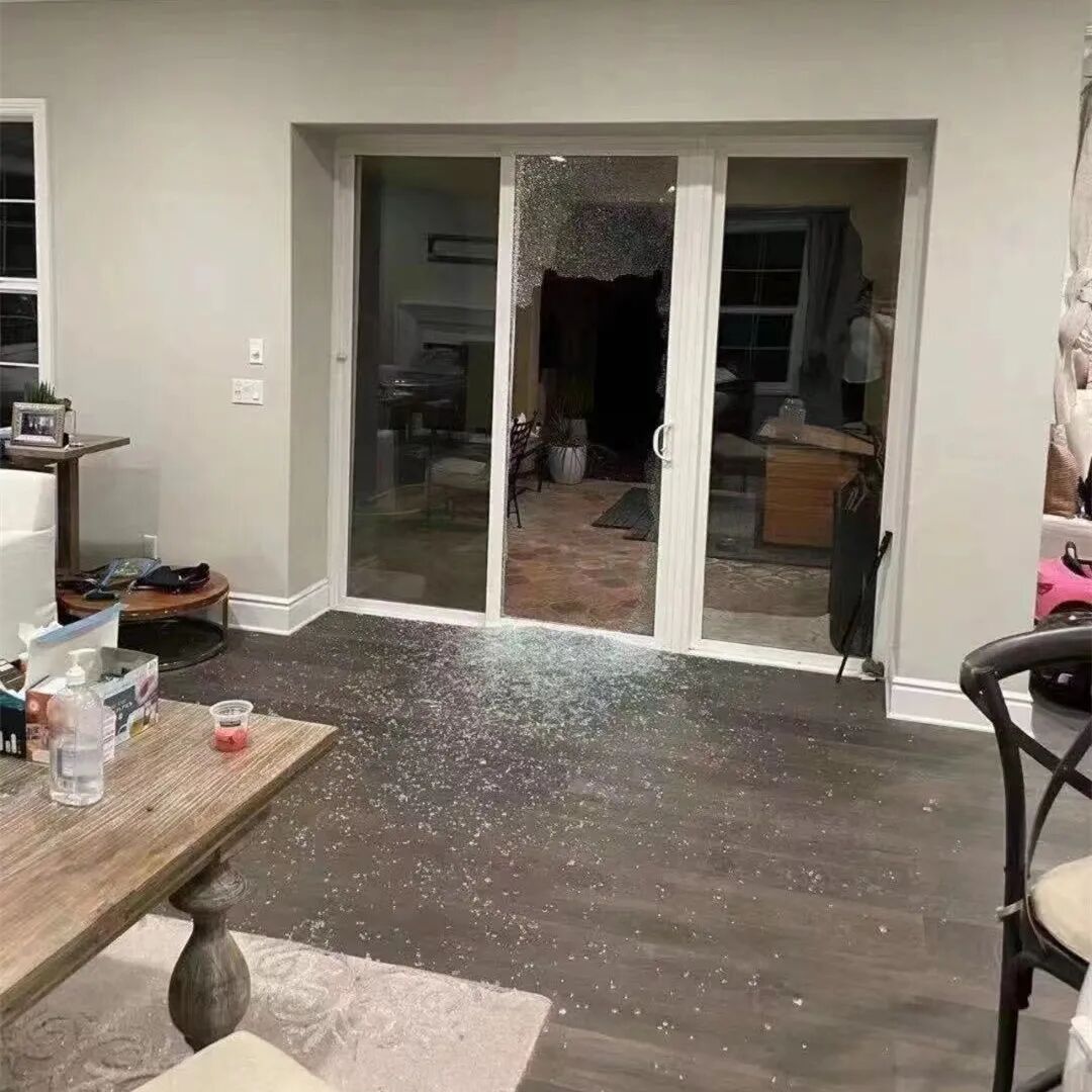 后院玻璃门被打碎,劫匪从这里闯入。图片来自于尔湾华人微信群