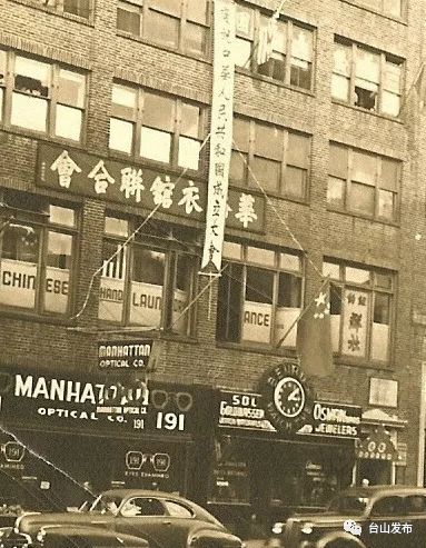 ▲1949年10月9日,衣联会在位于纽约唐人街中心的会所门前升起五星红旗。
