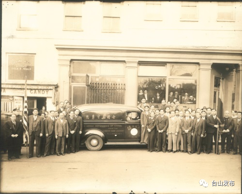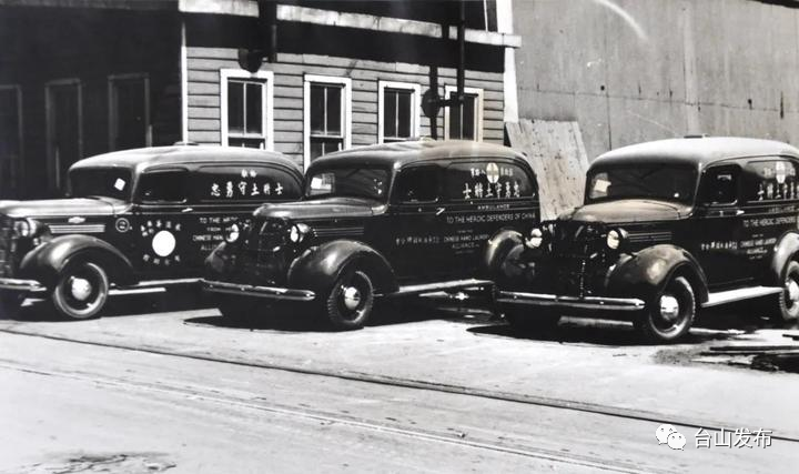 ▲1938年“美国纽约衣联会筹款购置救护车”历史照片▲衣联会会员在捐赠给国内抗战用救护车起运回国前留影