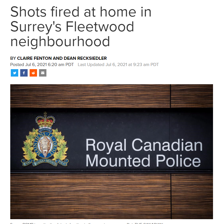 素里皇家骑警确认,被袭击的目标是警方所熟识的人物,这起枪击案与大温地区的帮派斗争有关,目前正在调查阶段。