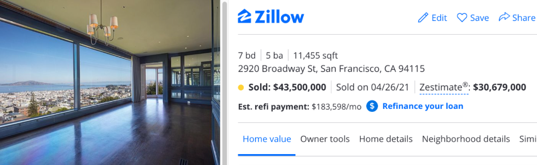 近日,旧金山一栋位于2920 Broadway的超级豪宅以4350万美元的售价创下了当地有史以来最高成交记录。