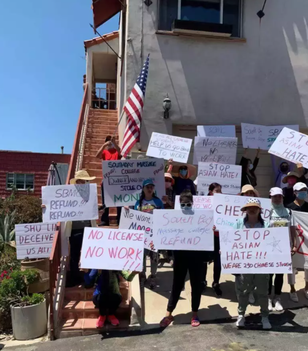 多位学生表示,他们现在也不知道怎么办,这些天去按摩学校所在城市曼哈坦滩警察局报警,同时申请抗议许可。