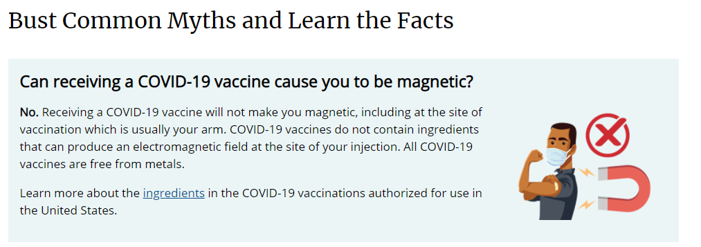 而,美国疾病控制与预防中心(CDC)也在网站表示,新冠疫苗没有会产生电磁场的成分。