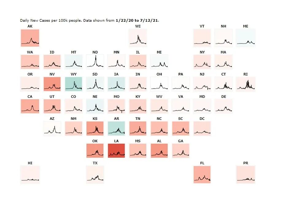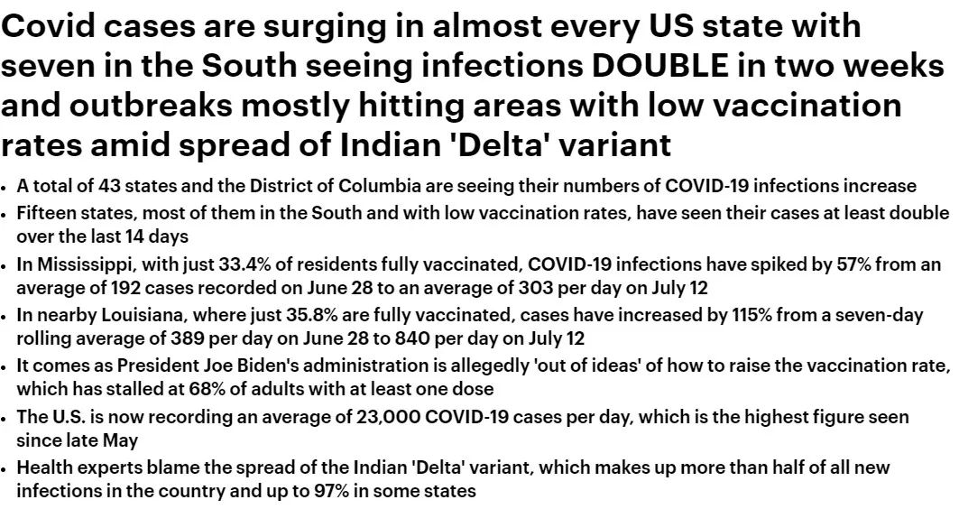 并且,由于印度变种Delta的肆虐,疫情在疫苗接种率低的地区传播速度非常快。