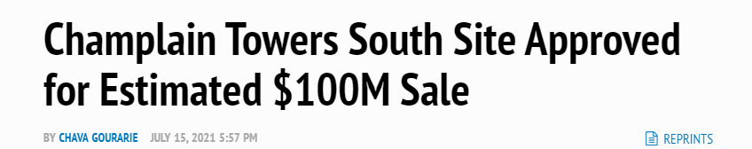 据了解,坍塌大楼的地皮售价将达到1亿美元,在成功出售后,法官Michael Hanzman表示,将尽快推进赔偿事宜。
