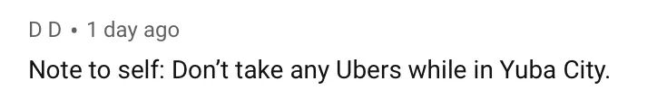 "我告诉自己,以后在尤巴市别再打网约车了“
