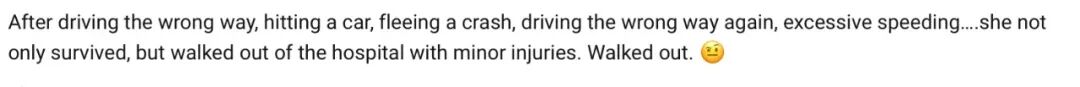 “在开错路,撞上车,肇事逃逸,超速后,她居然还活着,受了点小伤走出医院…走出…"