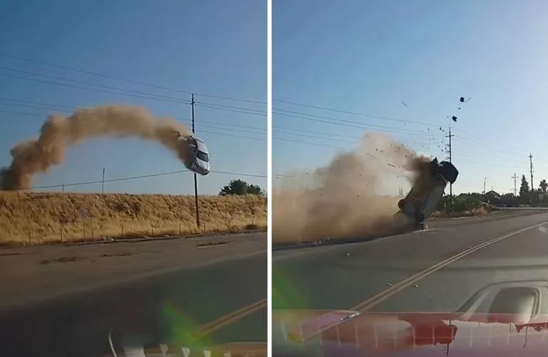 车身直接起飞~ 加州司机肇事逃离二次出事,宛如炮弹坠落吓呆目击者,居然只受轻伤