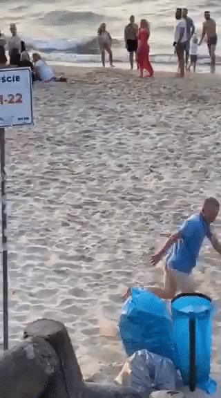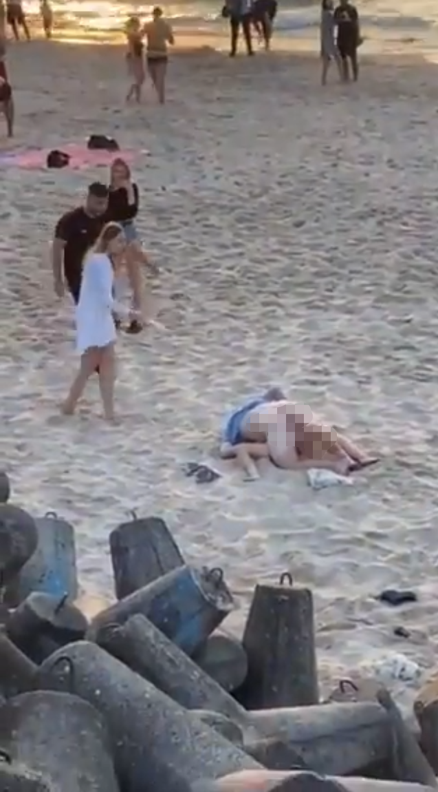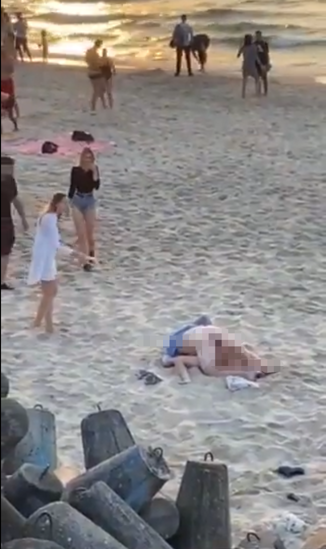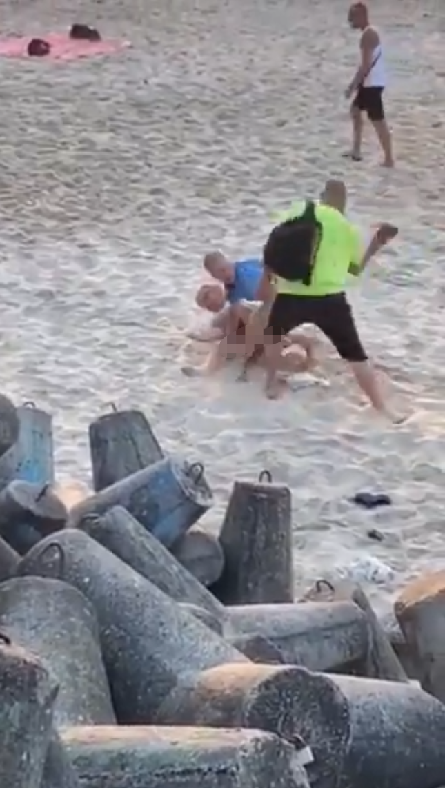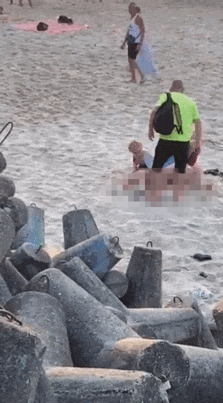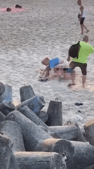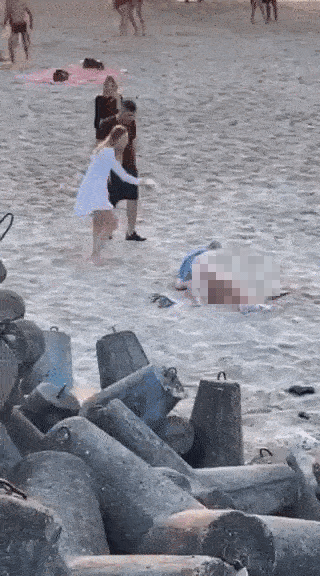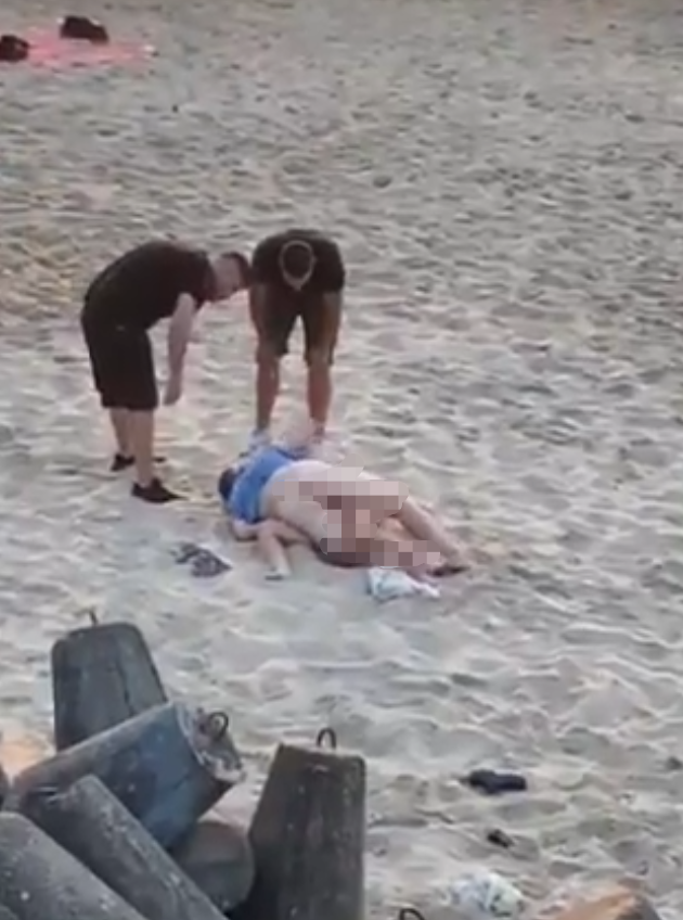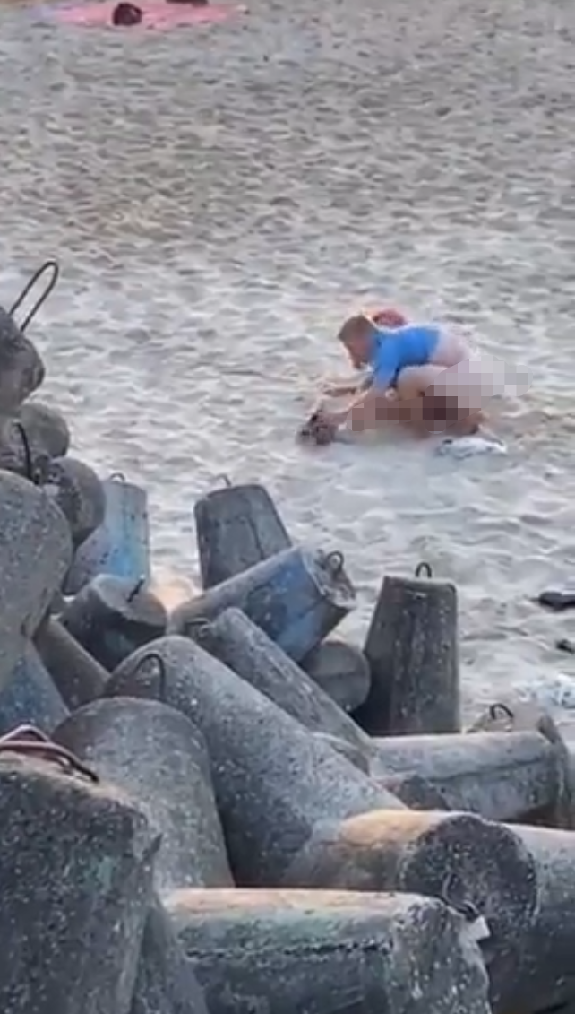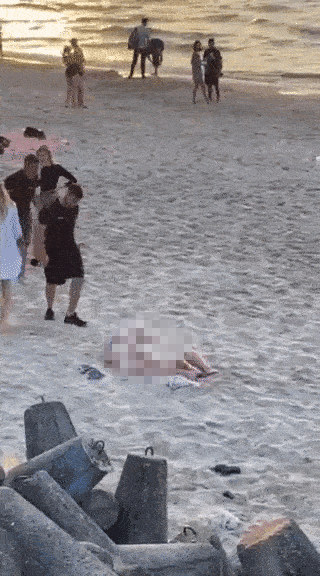 情侣海滩上公然啪啪啪!百人围观!大叔狂揍半裸男