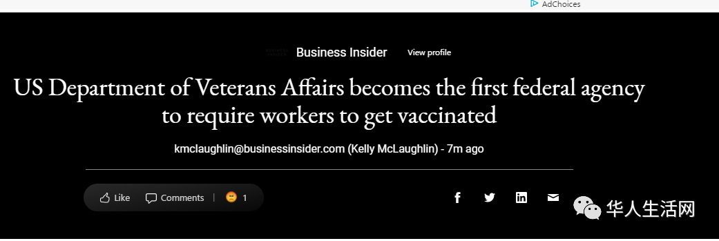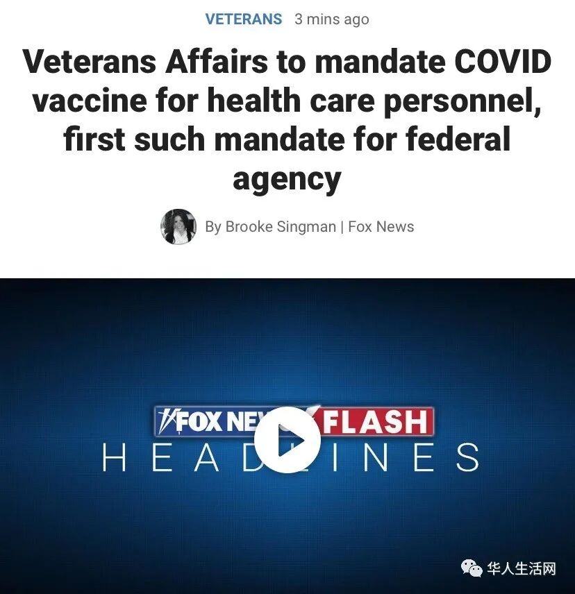 美首个联邦机构强制接种疫苗!辉瑞,莫德纳5-11岁疫苗恐被拖迟!孩子“裸跑”迎开学! 退伍军人事务部长丹尼斯-麦克多诺周一规定所有退伍军人事务部的医护人员必须接种COVID-19疫苗,这是全美联邦机构的第一个强制规定。