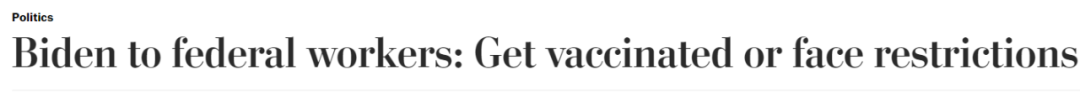 拜登宣布对400万联邦雇员实行疫苗令图:华盛顿邮报新闻标题截图