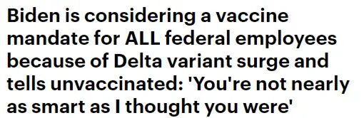 同时拜登总统还表示,他正在考虑对所有联邦雇员强制接种疫苗。