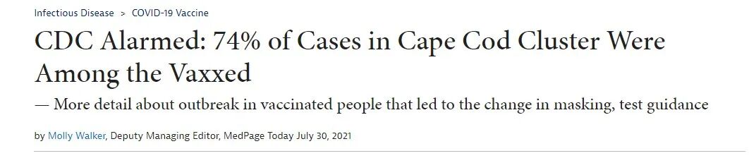 据悉,这起群体感染事件的起源是当地小镇的一项夏日大型集会,没想到一场肆无忌惮的狂欢却带来了一场噩梦。在469起确诊病例中,有346人(74%)已经完全接种两针疫苗,他们接种的都是已经被批准的辉瑞、强生、莫德纳,并且已经接种超过了14天。