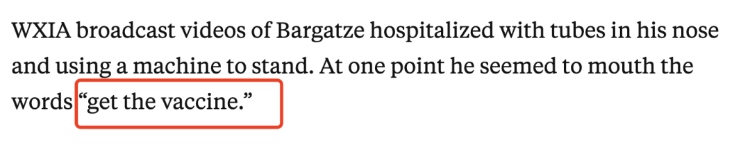 据悉,他还曾在病床上小声念着“去打疫苗”。最终,他在6月接受了双肺移植,手术前还接种了新冠疫苗。