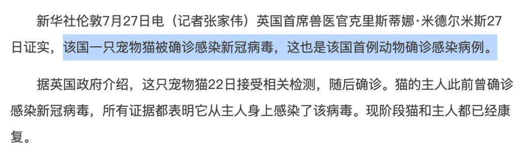 在去年,英国出现首例动物(一只宠物猫)确诊感染新冠病毒病例。
