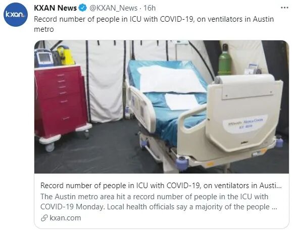 而这一次,他站出来喊话,是为了恳求医务人员能来德州支援抗疫。因为德州首府奥斯汀的医院已不堪重负,只剩下6张ICU病床,医疗系统濒临崩溃。