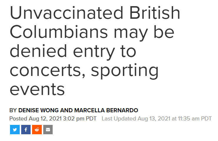 除此以外,BC省首席卫生官员明确表示,如果你拒绝接种COVID-19疫苗,那你也将失去参加各种比赛或音乐会的机会,并且医院也会表示禁止进入。