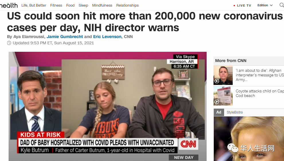 在昨天美国国家卫生研究院院长弗朗西斯-柯林斯博士表示,如果我们在接下来的几周内每天不超过20万个病例,我将感到惊讶。这种令人心碎的情况,抛开12岁及以下青少年,9000万人仍然没有接种疫苗,他们是Delta这种病毒的活靶子,这就是我们所处的困境。