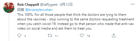 就该这样。对于认为医生在疫苗问题上对他们撒谎的那些人,当你感染covid-19后,就不要再跑去找医生要求治疗了。相反的,你应该去找那个在社交媒体上制作反疫苗视频的人,请他们为你治疗。
