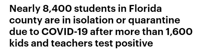 佛罗里达一个县,8400名学生隔离,超1600名师生确诊。