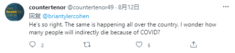 说得对。全国各地都在发生同样的事情。我想知道到底有多少人会因为新冠肺炎而间接死亡?