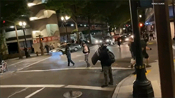 当昨天下午波特兰爆发了安提法和保守派的大规模械斗时,双方抗议者一开始只是发射了彩弹和气枪,相互喷洒了化学毒剂,但奇怪的是,一名男子摒不住开了枪。 波特兰警方告诉福克斯新闻,躲在垃圾桶后面开枪的男子后来被捕,但不清楚他是否与安提法与川粉的冲突有关。