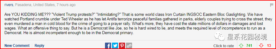 你们所谓的右翼人士只是正常爱国的美国人,他们终于受够了白左的胡说八道。 美国民主党人管理的城市就是地狱。 拳击和枪战爆发了,但因为是反法西斯组织参与,所以没有逮捕他们中的任何人。 你在跟我开玩笑吗川普支持者的暴力抗议?“恐吓?”这是INGSOC东部集团的世界级铁幕。我们目睹了波特兰在特德·惠勒的领导下崩溃,他让安提法恐吓聚集在公园里的和平家庭、袭击试图穿过街道的老年夫妇,他们甚至残忍地谋杀了一名参加祈祷集会的男子。更重要的是,他们给国家造成了数以百万计美元的损失和收入折损。惠勒说这种话真是无礼。他和乔一样都是民主党人,所以他天生就喜欢撒谎,并且符合作为民主党人参选所需的无能水平。乔几乎没有能力参加民主党的初选。(但还是当了总统…) 媒体无法抗拒尝试将川普的名字与此联系起来的机会,尽管这与他无关,但我们又回到了川普仇恨的大风车上。 尽可能远离波特兰。地狱! 我不知道老乔是否仍然认为反法西斯联盟“只是一个想法”! 之前我也说过,波特兰等地很像曾经的“血色堪萨斯”,持续4年的相互殴打、恐吓演变成杀戮之后,就点燃了内战的序曲。现在波特兰才第一年,双方的仇恨值还不高……不过未来会演变成什么样子,难以预料