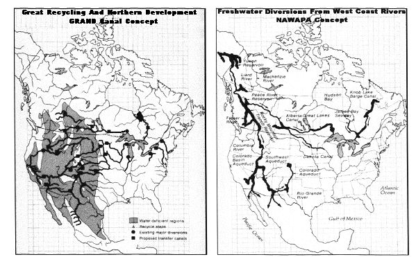 美国专家们也想过办法通过北部发展(GRAND)运河计划,大坝詹姆斯湾,在哈德逊湾南端,创建一个淡水水库,并从20条河流流进疏导水乔治亚湾。然后水将通过五大湖被冲入通往美国西南部的河道。