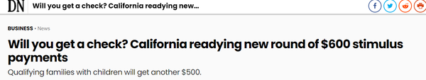 又一轮发钱!加州新一轮经济刺激金8月底发放 每人$600 有...