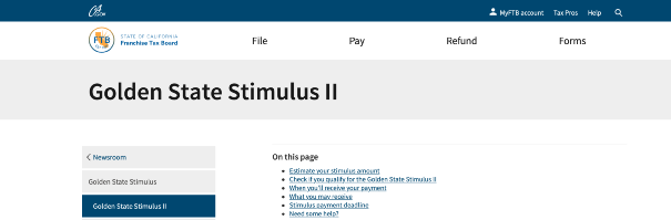 今年早些,加州刺激计划向得到加州劳动所得税抵免的低收入家庭发放了第一批600美元或是1200美元的补助。这些家庭的年收入一般是不到3万美元。要想了解加州经济刺激资金补助更多详细信息,请登录以下网站 ftb.ca.gov查询相关信息。