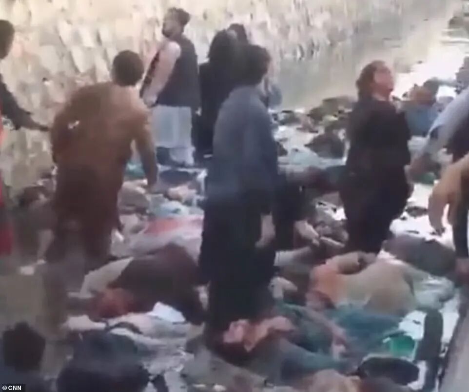 一则由阿富汗记者上传的视频显示,大街上有一大堆血淋淋的尸体,肢体残骸支离破碎,拍摄者一边拍一边哭泣……