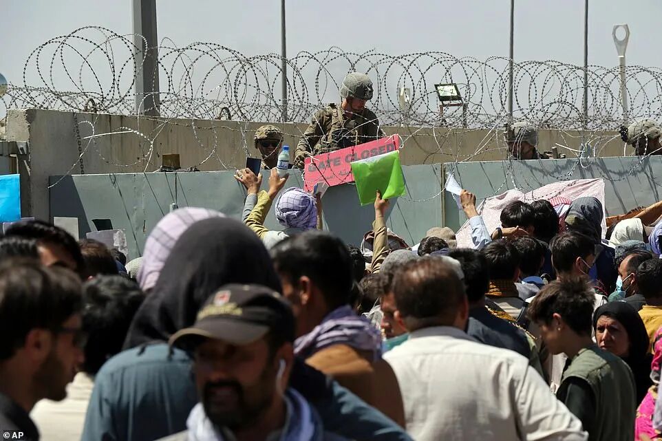 两地分别聚集了大量计划离开阿富汗平民和美国、英国公民。有一些阿富汗人已经在那里等候了1个多星期,希望能乘坐其中某个航班离开。