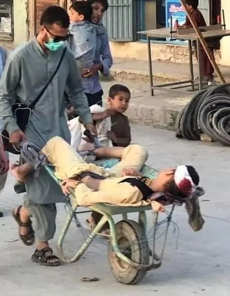 儿童、平民、美国军人,包括塔利班人,在突如其来的爆炸中或死或伤。