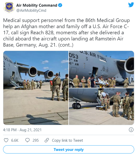 逃离阿富汗的妇女在美国军机上生下女孩,用航班号命名...