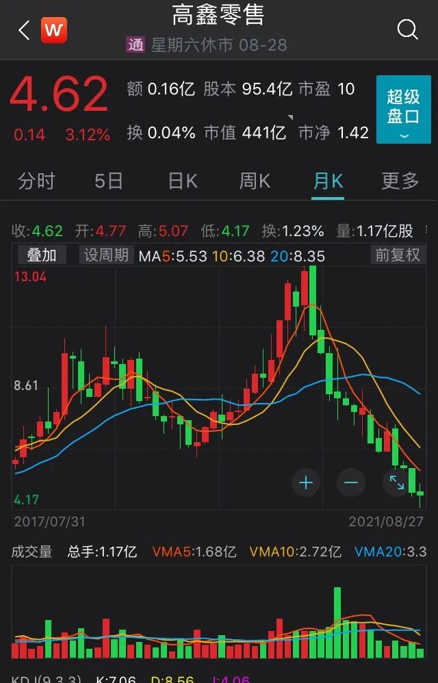 从阿里入股到控股,过去4年间高鑫零售的股价坐了一轮过山车,近期还在持续刷新近四年新低。