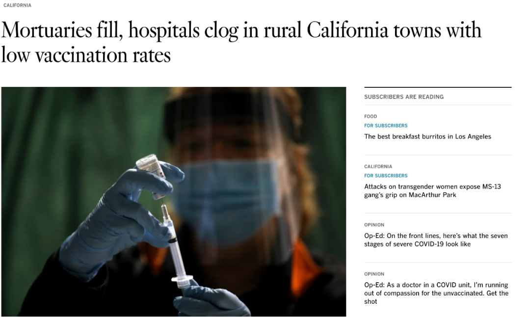 新冠疫情已经持续一年半了,而自从高效疫苗上市以来已经过去八个月了,但新冠病毒正在加州农村地区涌现,那里的接种率很低。