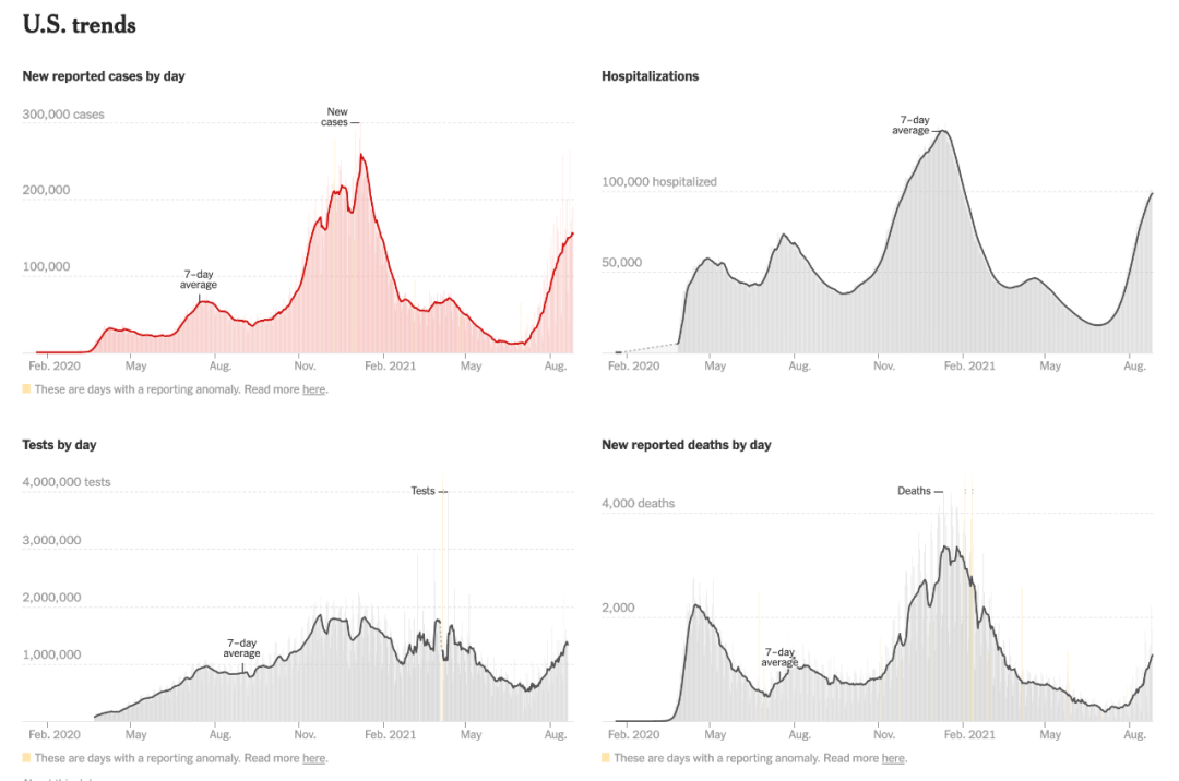 美国病例、住院人数和死亡人数在8月都出现明显上升