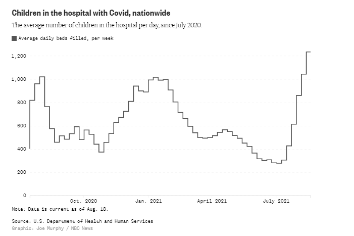 自各学校陆续开学以来,在截至8月19日的一周内,有超过18万名儿童确诊,与6月份暑假开始时的几周相比,增加了多达20倍。