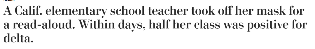 前两天,美国CDC发表报告透露,加州Marin县一名没打疫苗的老师,5月19日出现鼻塞和疲劳症状,但是她以为是过敏引起,因此没有请假继续上班。