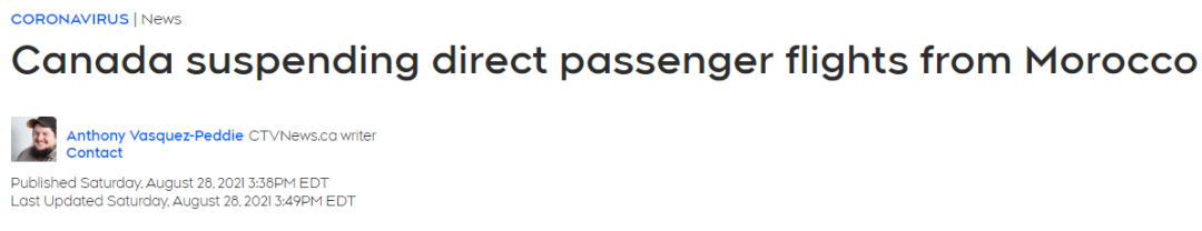 周六,加拿大交通部宣布,从周日凌晨开始,所有从摩洛哥直飞加拿大的商业和私人客运航班都受《禁止入境法》的约束。