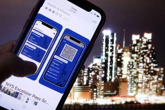 越来越多州准备核发疫苗接种护照,以增加接种人数,保障安全。图为纽约州府核发的疫苗接种证明。(Getty Images)