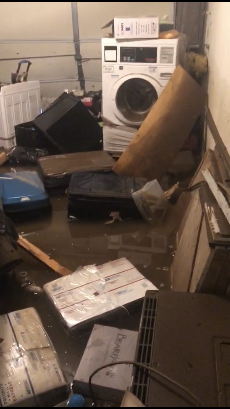 第二天,曾经温馨的家已是一片狼藉。洗衣机,烘干机,跑步机等昂贵家电已全部被毁,损失惨重。被洪水淹过的房间和家具,也脏得惨不忍睹。