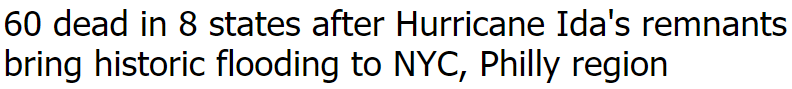 本周,IDA飓风让美国纽约遭遇500年未见的历史级灾难暴雨,车水马龙的城市顷刻间被滚滚洪流淹没。截至目前,美国8个州至少已有60人因这场飓风死亡,不少人听到邻居哀嚎呼救,却不敢施援,最后只能看着邻居的尸体被抬出。