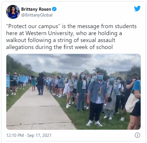 不仅如此,西大还证实在开学第一周,校方接到了另外4宗性暴力投诉。但这些事件似乎与周末的事件无关。
