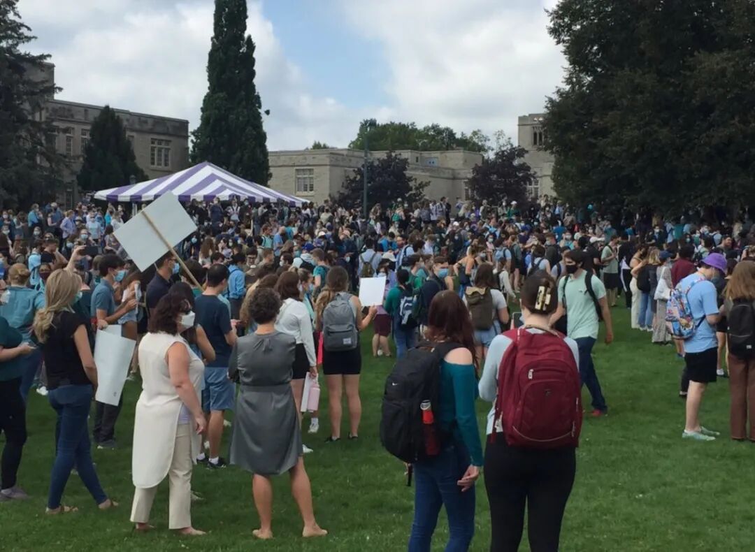 周五(9月17日),西大的学生自发性组织了一场大规模“罢课游行”,近万人聚集在校园里,抗议校园内外发生的各种性暴力事件。